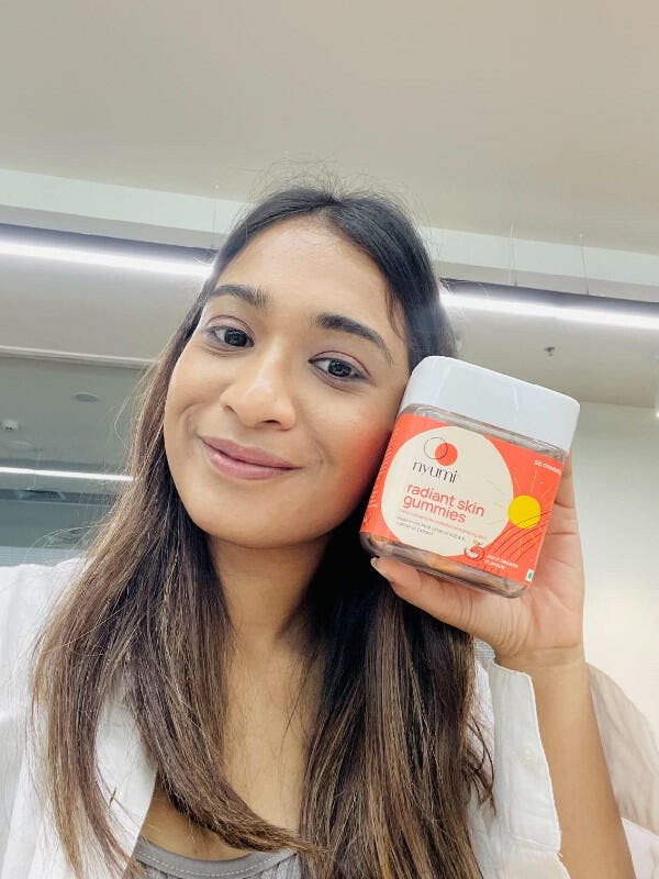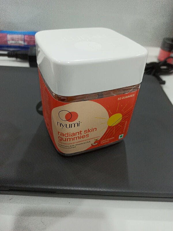 Glowing skin is always in! Nyumi radiant skin gummies are formulated using an enriching blend of 8 essential Indian herbs and Western ingredients including Vitamin C & E, Hyaluronic Acid and Curcumin extract (Haldi). Give your skin much needed nutrient-love for that healthy glow, and build collagen from within. To top it all, skin gummies taste like juicy mandarin oranges, so it's a win-win. Best before 17 months from date of manufacture. Latest Batch: Mfg. Date 29-02-2024 (SLG24021)
